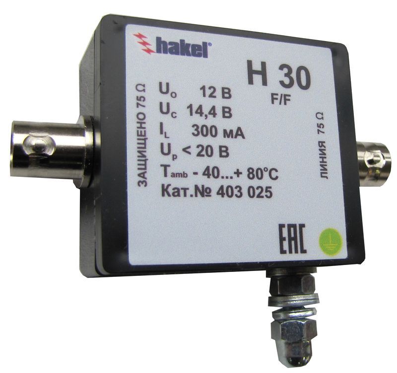 УЗИП H30, ТУ 3428-002-79740390-2007 предназначены для защиты оборудования по одной коаксиальной линии, например видеокамеры.