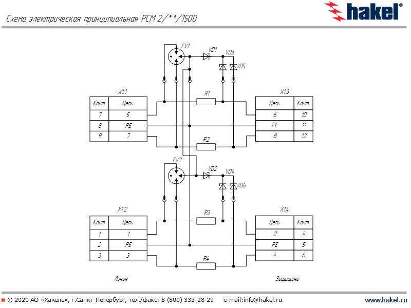 Пример: РСМ 2/30/1500 - УЗИП со сменным модулем производства АО "Хакель" для защиты оборудования слаботочных цепей, с номинальным током IL = 250 мА, размещено в корпусе для крепления на DIN-рейку 35 мм, количество пар защищаемых проводников - 2, номинальное рабочее напряжение Uo = 30 В DC, первая ступень защиты выполнена на газонаполненных разрядниках с In(8/20) = 20 кА, вторая ступень защиты выполнена на TVS-диодах с Рppm = 1500 Вт. Сделано в России.