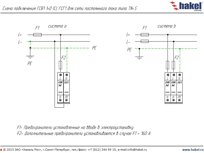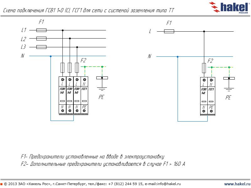 Внимание! Запрещена установка ГРОЗОСТОП® ГСГ1-230/25 в цепи L-N, L-PEN, L-PE, L+- L- так как из-за длительного воздействия сопровождающего тока УЗИП может выйти из строя.