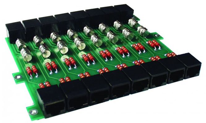 УЗИП серии HAKELTEL 8.* RJ/RJ, ТУ 3428-002-79740390-2007 выполнены в виде печатных плат для установки в 19-ти дюймовую стойку c помощью панели PSK 24 RJ/RJ.