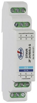 DTNVR 0.5 - устройство для защиты оборудования слаботочных цепей с номинальным током IL=0.5 А, размещено в корпусе для крепления на DIN-рейку 35 мм;