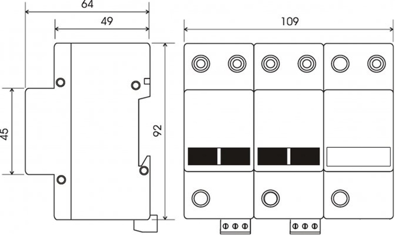 • Работают в температурном диапазоне -40...+80°C. • Варисторные секции снабжены терморасцепителями. В исправном состоянии индикатор утоплен, в неисправном - выдвинут.