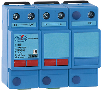 Трехполюсные УЗИП класса испытаний I,II,III комбинированного типа для сетей постоянного тока. Uo = 220 В DC. Iimp(10/350)= 25 кА.