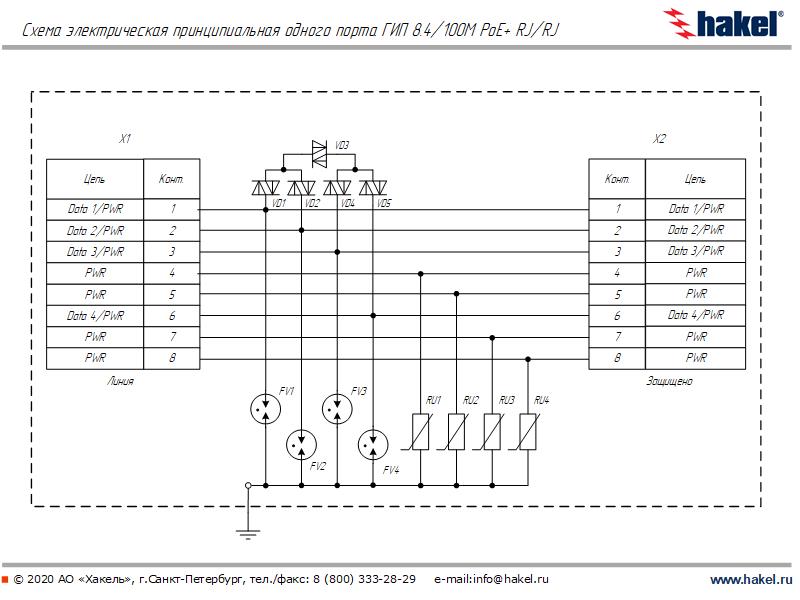 < 15 В - пары данных (В2 - 1 кВ/ 25 А); < 75 В - пары PoE (В2 - 1 кВ/ 25 А) |