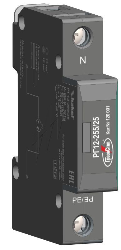 РГ12-255/25 представляет собой однополюсное УЗИП коммутирующего типа, предназначенное для защиты силовых цепей переменного тока при кабельном или воздушном вводе электропитания в сетях с системами заземления типа TN-S и ТТ.
