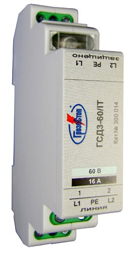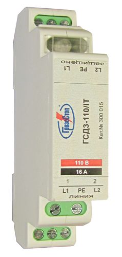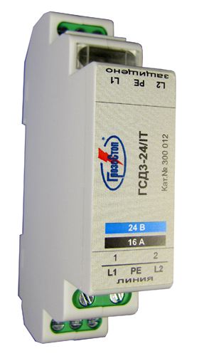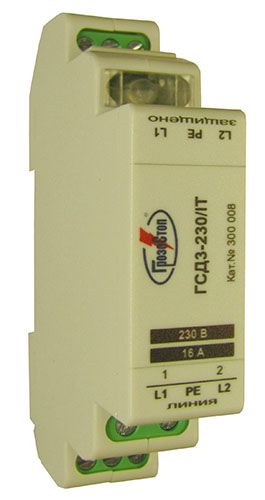 ГСД3-*/IT, размещён в корпусе для крепления на рейку DIN 35 мм. Имеет в своём составе в цепи L/N варисторы, в цепи N/PE газонаполненный разрядник. Варисторы снабжены встроенным терморасцепителем, который срабатывает при повреждении (перегреве) варистора.