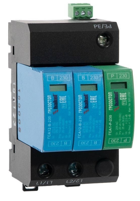 ГСА12 К 230 2+1 С предназначен для защиты оборудования вторичного электропитания, автоматики и телемеханики по двухпроводным изолированным линиям переменного тока частотой 50 Гц с номинальным напряжением U0 = 230 В и максимальным длительно допустимым рабочим напряжением Uc = 350 В, а также постоянного тока с напряжением U0 = 300 В и максимальным длительно допустимым рабочим напряжением Uc = 350 В от воздействия как продольных (провод/земля) так и поперечных (провод/провод) импульсных перенапряжений, источником которых являются грозовые воздействия и коммутационные перенапряжения в результате переключений в цепях индуктивных и ёмкостных нагрузок, коротких замыканий в распределительных электрических сетях высокого и низкого напряжения.