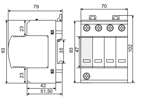 • Состоят из сменных варисторных модулей, модуля с разрядником и базы для подключения к сети и креплению к DIN-рейке 35 мм.