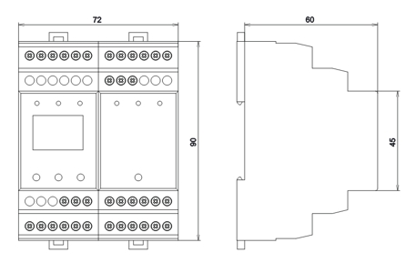 Клеммы А1, А2 предназначены для подключения питания прибора. Напряжение питания: от 85 до 265 В АС (47÷440 Гц) или от 85 до 379 В постоянного тока.