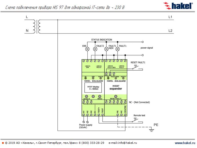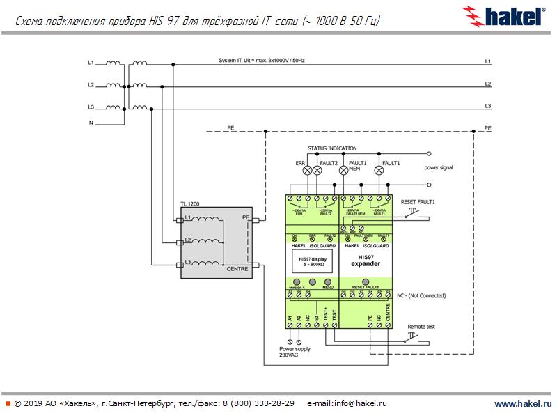 Прибор HIS 97 предназначен для непрерывного автоматического контроля сопротивления изоляции одно и трёхфазных сетей переменного тока с изолированной нейтралью (IT-сети) относительно шины PE.