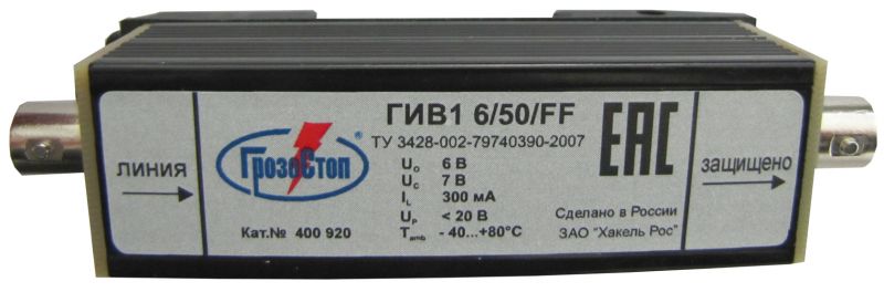 УЗИП ГИВ1 6/**/FF, ТУ 3428-002-79740390-2007 предназначены для защиты оборудования по одной коаксиальной линии, например видеокамеры.