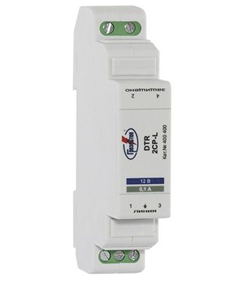 DTR - устройство для защиты оборудования слаботочных цепей с номинальным током IL=100 мА, размещено в корпусе для крепления на DIN-рейку 35 мм;