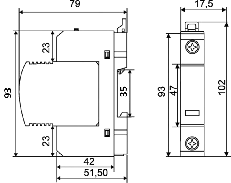 • Состоят из сменного модуля c разрядником и базы для подключения к сети и креплению к DIN-рейке 35 мм.