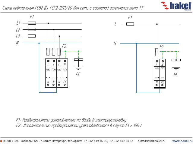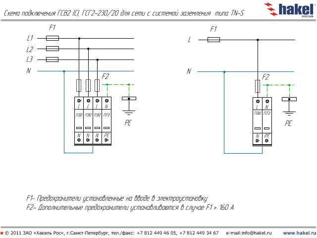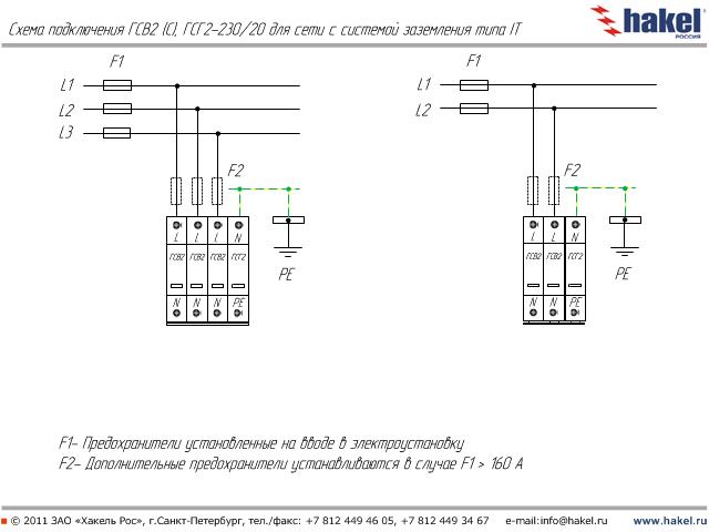 Внимание! Запрещена установка ГРОЗОСТОП® ГСГ2-230/20 С в цепи L-N, L-PEN, L-PE, так как из-за длительного воздействия сопровождающего тока УЗИП может выйти из строя.