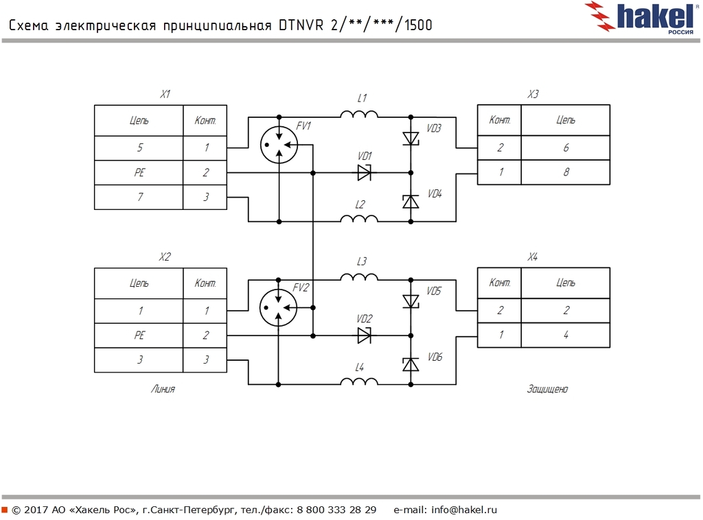 Пример: DTNVR 2/6/1.5/1500 - устройство для защиты оборудования слаботочных цепей с номинальным током IL= 1.5