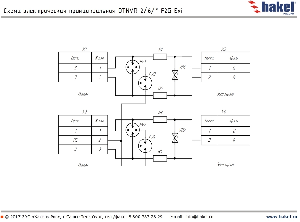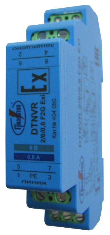 пар защищаемых проводников - 2, номинальное рабочее напряжение UО= 6 В DC, внутренняя схема F2G, вид взрывозащиты - искробезопасная цепь, устройство сделано в России. | |