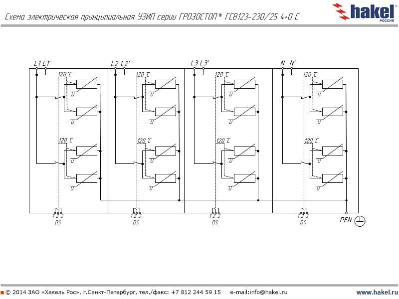 ГРОЗОСТОП® ГСВ123-230/25 4+0 С, ТУ 3428-002-79740390-2007 – серия четырехполюсных УЗИП класса испытаний I, II, III на основе оксидно-цинковых варисторов.