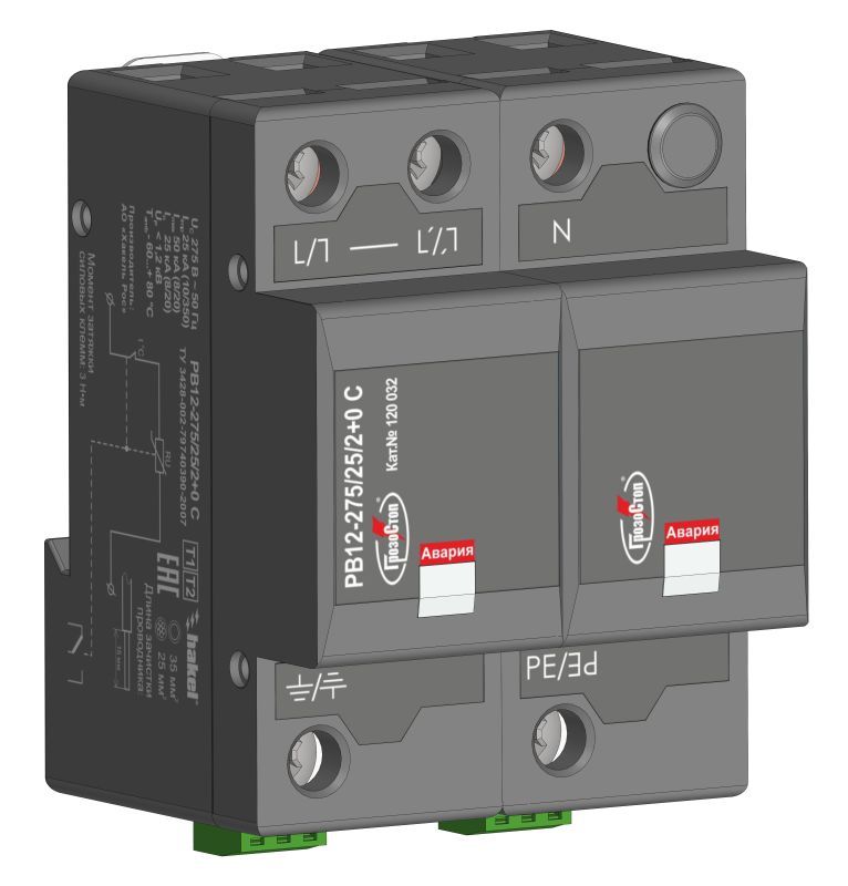 Пример: РВ12-320/25/2+0 С - двухполюсное УЗИП ограничивающего типа торговой марки ГРОЗОСТОП® производства АО "Хакель" для защиты оборудования распределительных сетей до 1000 В, класса испытаний I+II в соответствии с ГОСТ IEC 61643-11; Uc = 320 В АС, Iimp = 25 кА. Для удаленного контроля рабочего состояния УЗИП дополнительно снабжено “сухим” контактом дистанционной сигнализации. |