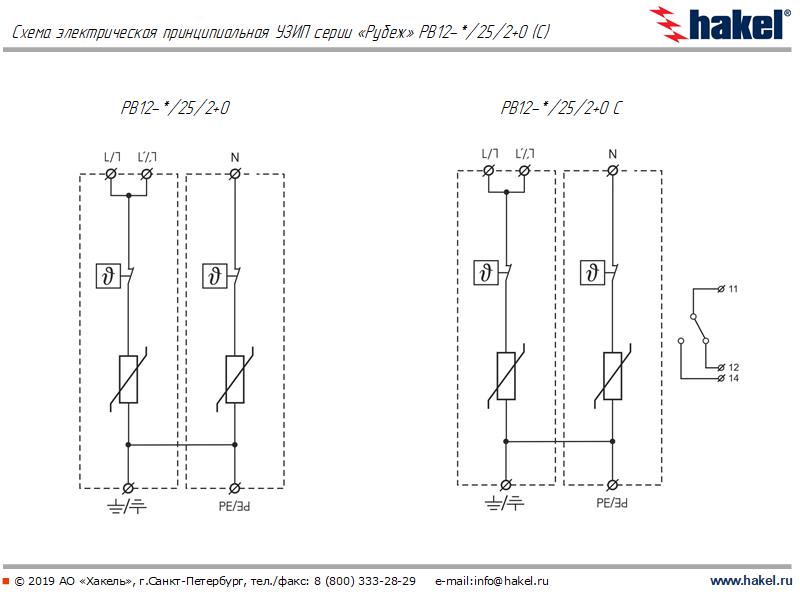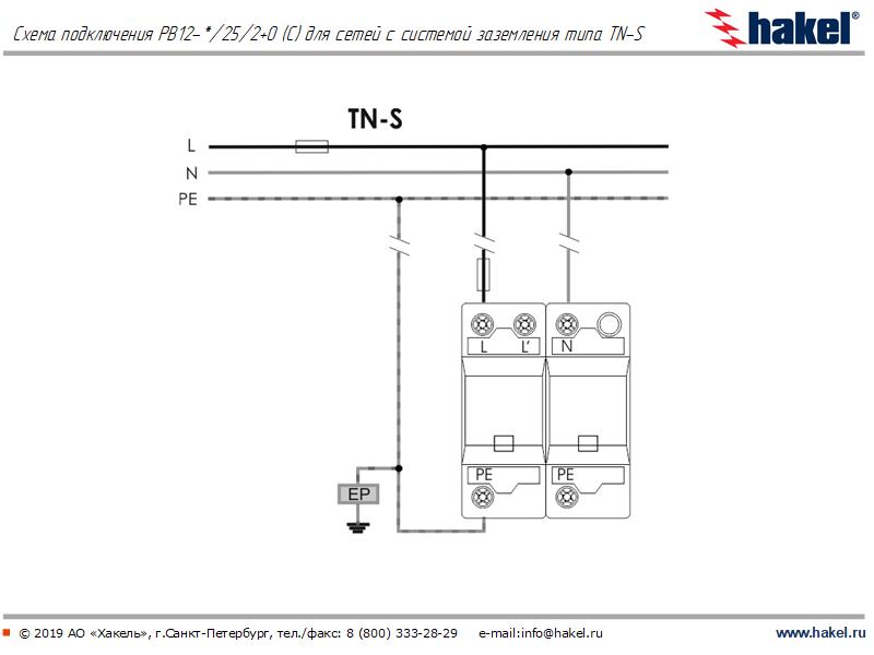РВ12-*/25/2+0 ** представляет собой двухполюсное УЗИП ограничивающего типа предназначенное для защиты силовых цепей переменного и постоянного тока при кабельном или воздушном вводе электропитания в сетях с системами заземления типа TN-S. Конструкция УЗИП позволяет выполнить «V»-образное (проходное) подключение фазных проводников.