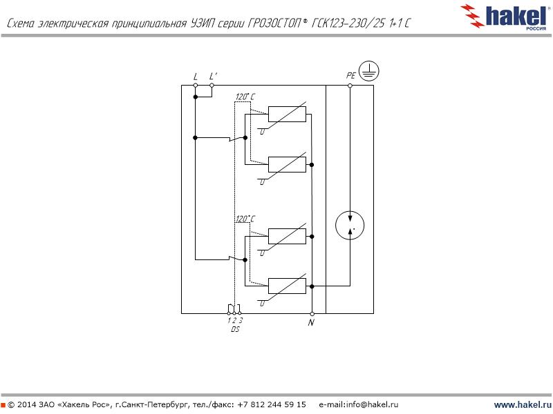 Пример: ГРОЗОСТОП® ГСК123-230/25 1+1 С - УЗИП производства АО "Хакель" для защиты оборудования распределительных сетей до 1000 В ограничивающего типа, УЗИП класса испытаний I, II, III в соответствии с ГОСТ IEC 61643-11, Uо=230 В АС, Iimp(L/N)(10/350)=25 кА, два полюса, схема включения для защиты от поперечных перенапряжений. Для удаленного контроля рабочего состояния УЗИП дополнительно cнабжены “сухими” контактами дистанционной сигнализации. | | | |