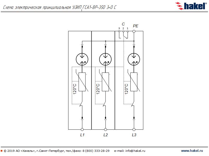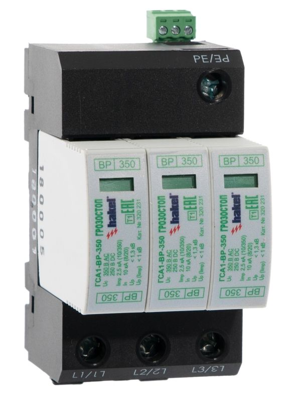 ГСА1 ВР 350 3+0 С представляет собой трехполюсный УЗИП класса испытаний I, согласно ГОСТ IEC 61643-11-2013, комбинированного типа на основе последовательно соединённых оксидно-цинковых варисторов и газонаполненных разрядников.
