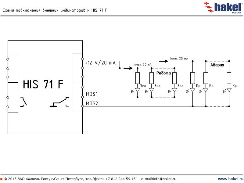 Устройство HIS 71 F имеет два исполнительных выхода. Первый выход- "сухой" контакт