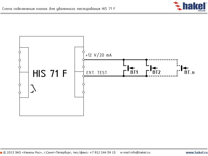 подключается к клеммам EXT. TEST и +12V/20мA устройства.