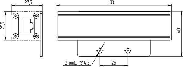 Со стороны линии и защищаемого оборудования установлены разъёмы 8Р8С (RJ45). Корпус устройства и экраны разъёмов соединены с землёй.