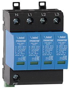 ГРОЗОСТОП® ГСВ1-*/** 4+0 С, ТУ 3428-002-79740390-2007 – серия четырехполюсных УЗИП класса испытаний I на основе оксидно-цинковых варисторов.