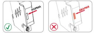 Визуальный контроль рабочего состояния УЗИП проводится с помощью цветного индикатора - “флажка”, расположенного в окошке на лицевой части. В неисправном состоянии появляется «флажок» красного цвета.