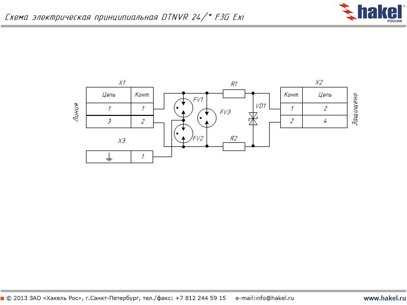 пар защищаемых проводников - 1, номинальное рабочее напряжение UО= 24 В DC, внутренняя схема F3G, вид взрывозащиты - искробезопасная цепь, устройство сделано в России. | |