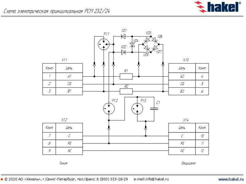 Пример: PCM 232/24 P - УЗИП со сменным модулем производства АО "Хакель" для защиты оборудования слаботочных цепей от заноса высокого потенциала со стороны