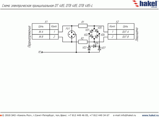 УЗИП серии DTB 485, ТУ 3428-002-79740390-2007 предназначены для защиты линий последовательного интерфейса RS485 от импульсных перенапряжений (грозозащита, защита от электростатических разрядов и др.) в пределах 1 - 2 зон молниезащиты в соответствии с МЭК 62305.