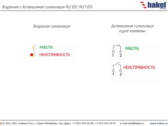 • Для удаленного контроля Pk2.1 DS дополнительно cнабжены “сухими” контактами дистанционной сигнализации.
