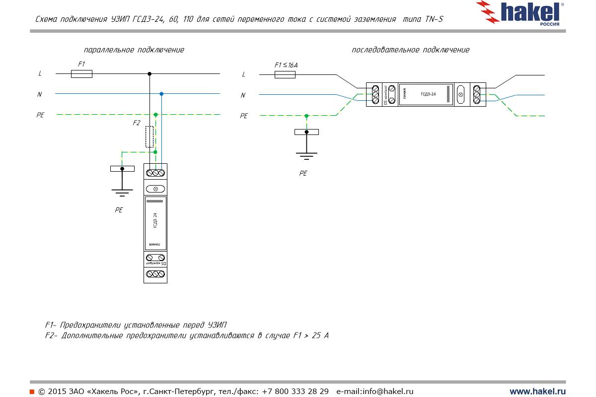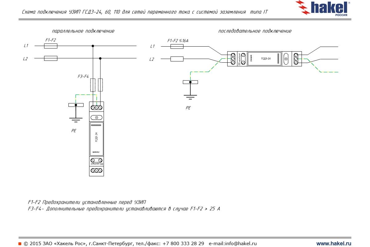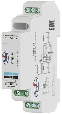 Пример: ГРОЗОСТОП® ГСД3-24 - УЗИП производства АО "Хакель" для защиты оборудования распределительных сетей до 1000 В комбинированного типа, УЗИП класса испытаний III в соответствии с ГОСТ IEC 61643-11, Uо=24 В АС/DC.