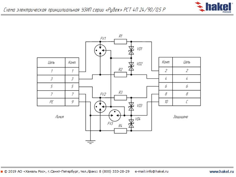 защиты при скорости нарастания 1кВ/мкс, линия/РЕ |