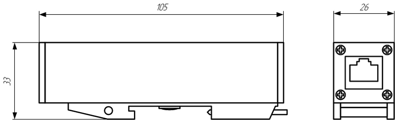 Со стороны линии и защищаемого оборудования установлены разъёмы 8Р8С (RJ45). Корпус устройства и экраны разъёмов соединены с контактом защитного заземления.