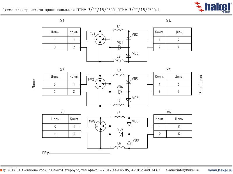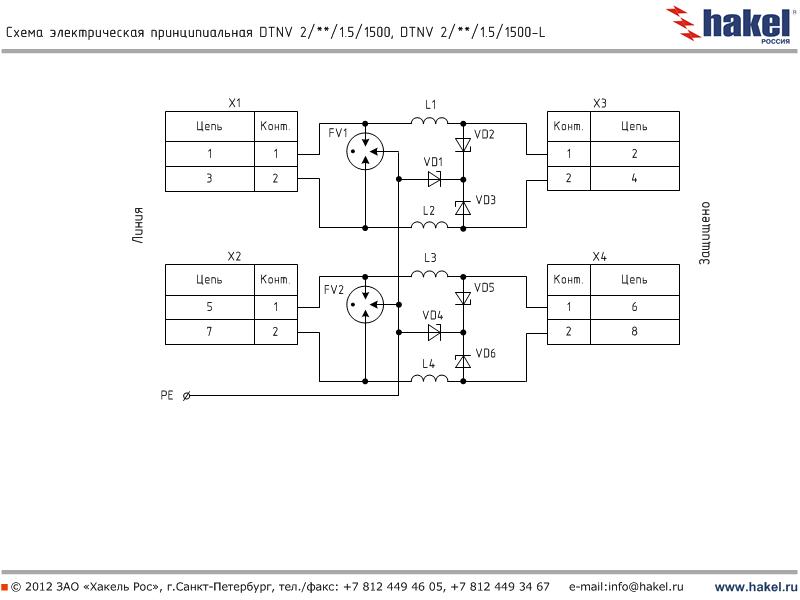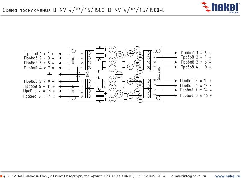 Пример: DTNV 2/6/1.5/1500 - устройство для защиты оборудования слаботочных цепей с номинальным током IL=1.5 А, выполнены в виде печатной платы для установки в защищаемое оборудование, количество пар защищаемых проводников - 2, номинальное рабочее напряжение Uo= 6 В DC, вторая ступень защиты выполнена на TVS-диодах с Ррpm=1500 Вт. | |