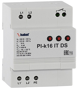 PI-k* IT DS, ТУ 3428-002-79740390-2007 – серия однофазных помехоподавляющих фильтров с встроенным УЗИП класса испытаний III для сетей с сиcтемой заземления типа IT.