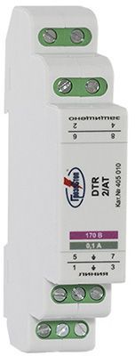AT - устройство для защиты оборудования от заноса высокого потенциала со стороны телефонных линий с номинальным рабочим напряжением Uo= 170 В DC, номинальным током IL= 250 мА, скоростью передачи данных до 10 Мбит/с.