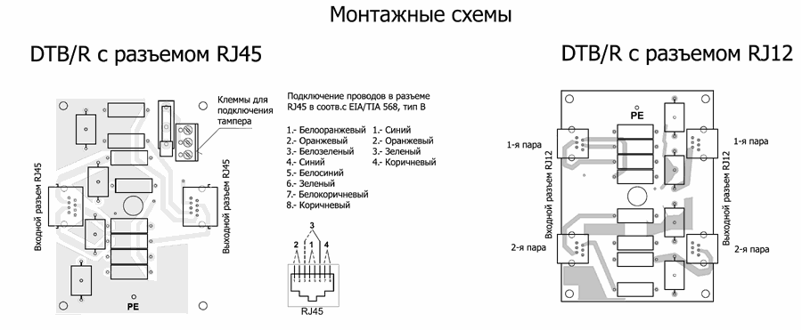 - Количество защищаемых пар проводников 1-2, подключение с помощью разъемов RJ45.