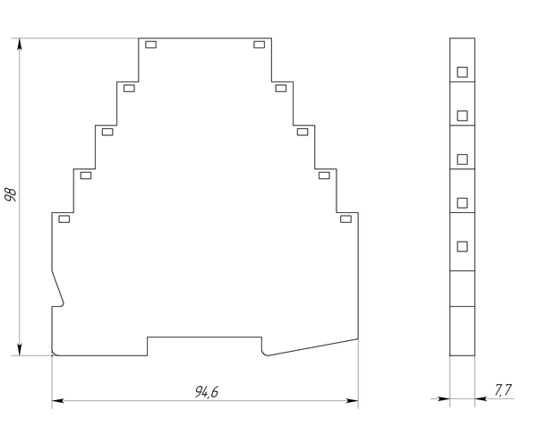 УЗИП серии ГИР 4П 24/90/0.5 Р, ТУ 3428-002-79740390-2007 размещены в корпусе толщиной 7.7 мм для установки на DIN-рейку 35 мм.